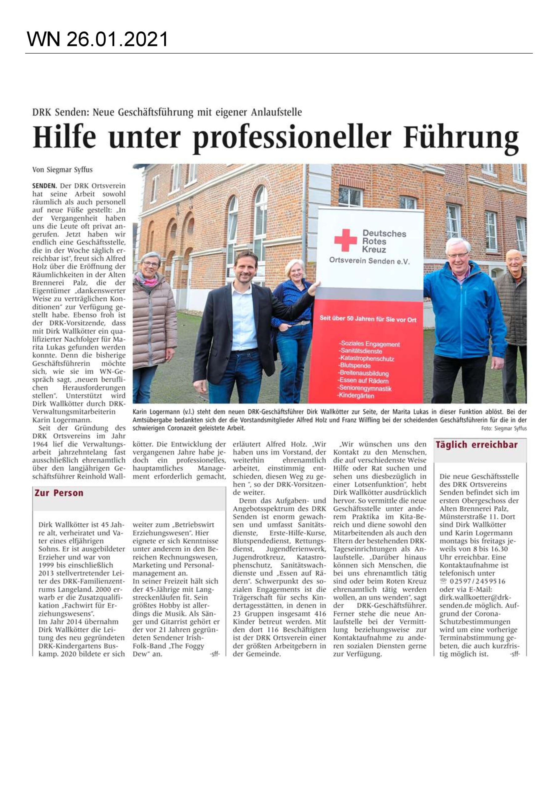 Neue Geschäftsführung – Hilfe unter professioneller Führung – WN 26.01.2021